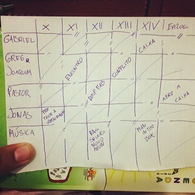 Eu gosto muito de fazer plot boards. Esse é um que eu fiz pro 4° Capítulo de Illuminatus. Saiba mais aqui.